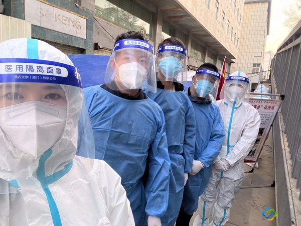 為全面貫徹落實(shí)習(xí)近平總書(shū)記關(guān)于疫情防控工作重要指示精神,堅(jiān)決落實(shí)習(xí)近平總書(shū)記關(guān)于“人民至上、生命至上”等重大要求,貫徹落實(shí)省委省政府及省、市、區(qū)新型冠狀病毒感染的肺炎疫情防控處置工作指揮部工作部署,堅(jiān)決打贏全省疫情防控殲滅戰(zhàn),進(jìn)一步有效阻斷新冠肺炎疫情擴(kuò)散,切實(shí)保護(hù)人民群眾生命安全和身體健康,我公司團(tuán)支部書(shū)記劉剛、團(tuán)員馬睿、馬玉枝、韓永秀、李淏盛五位同志積極響應(yīng)公司黨支部和西寧市城東區(qū)新冠肺炎疫情防控處置工作指揮部號(hào)召,主動(dòng)請(qǐng)纓參加西寧市城東主城區(qū)常住人口、來(lái)寧人員核酸檢測(cè)工作。